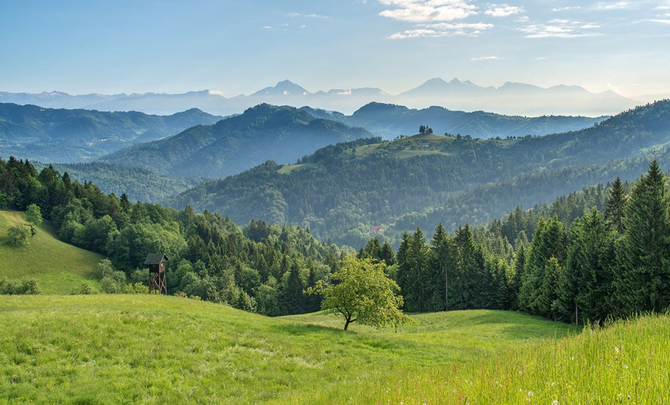 From the top of Krvavka hill (near more known Golica hill) the view goes a long way. Valley of river Drava can be seen stretching for miles and miles. To download the file in high resolution click the download button below.