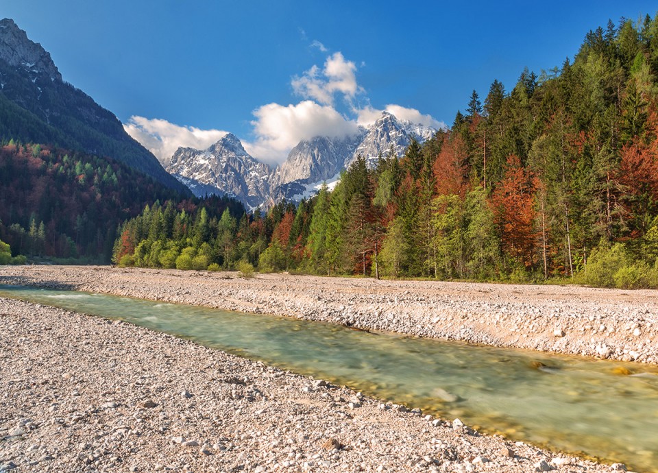 Pišnica river near the idyllic lake of Jasns. This scene is just a few kilometers from the town of Kranjska Gora. To download the file in high resolution click the download button below.